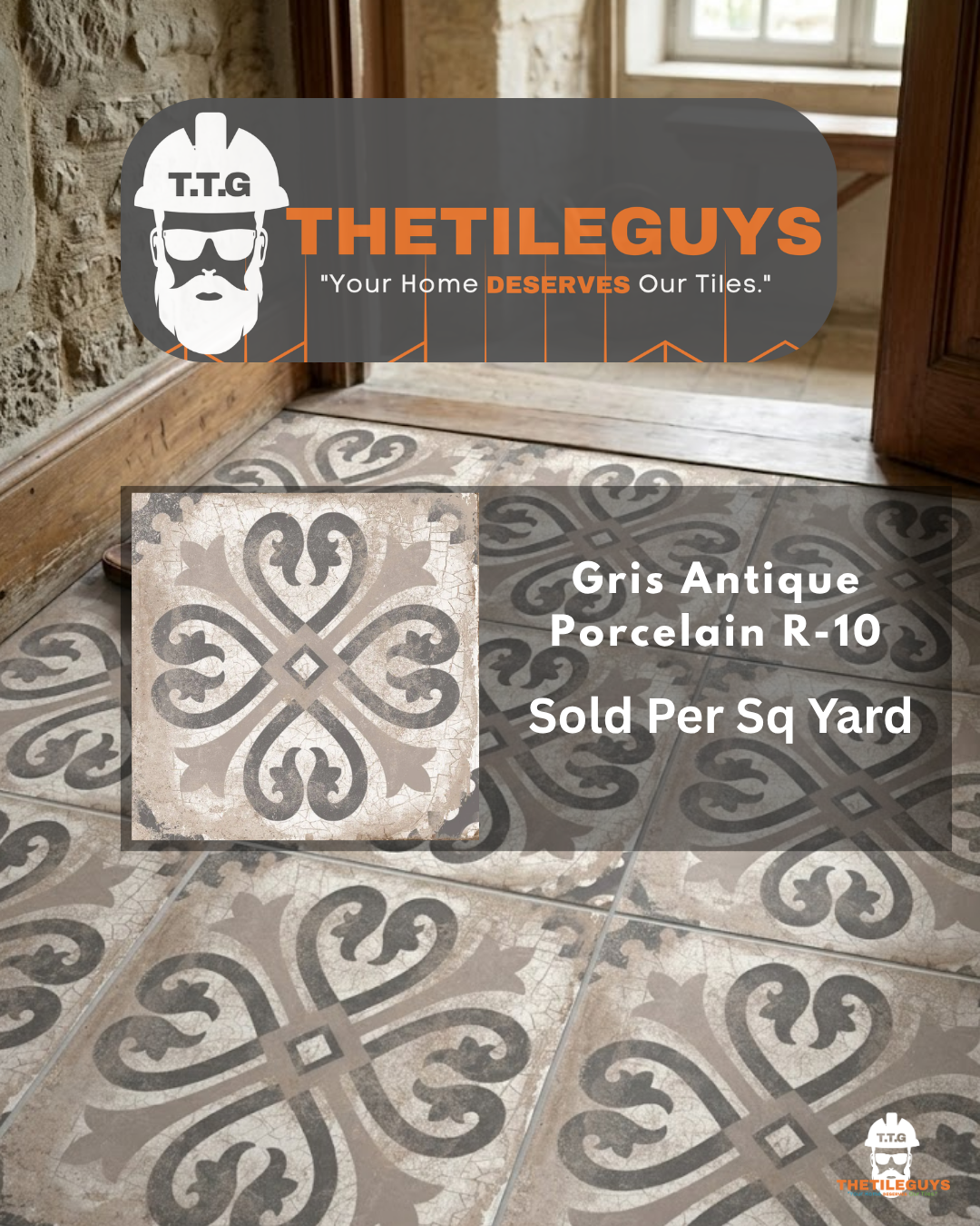 Bring elegance, personality, and practicality to your space with Gris Antique Porcelain R-10 22.5x22.5 – a decorative tile designed to make a lasting impression – The Tile Guys