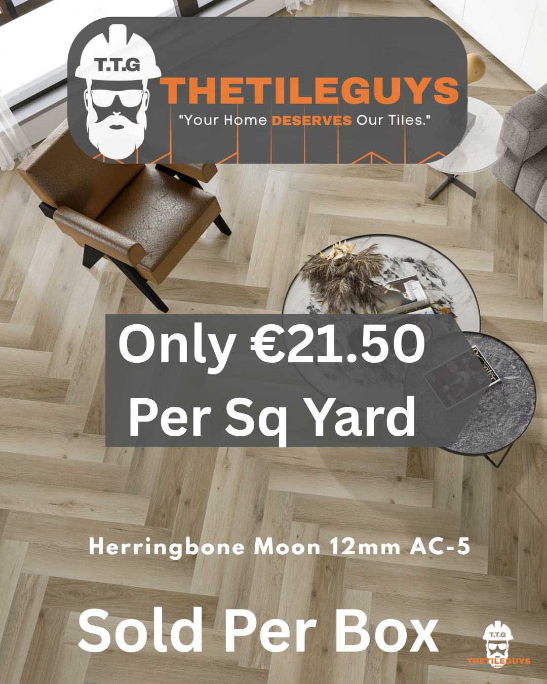 Upgrade your flooring with Herringbone Moon 12mm AC-5, where modern design meets lasting performance.