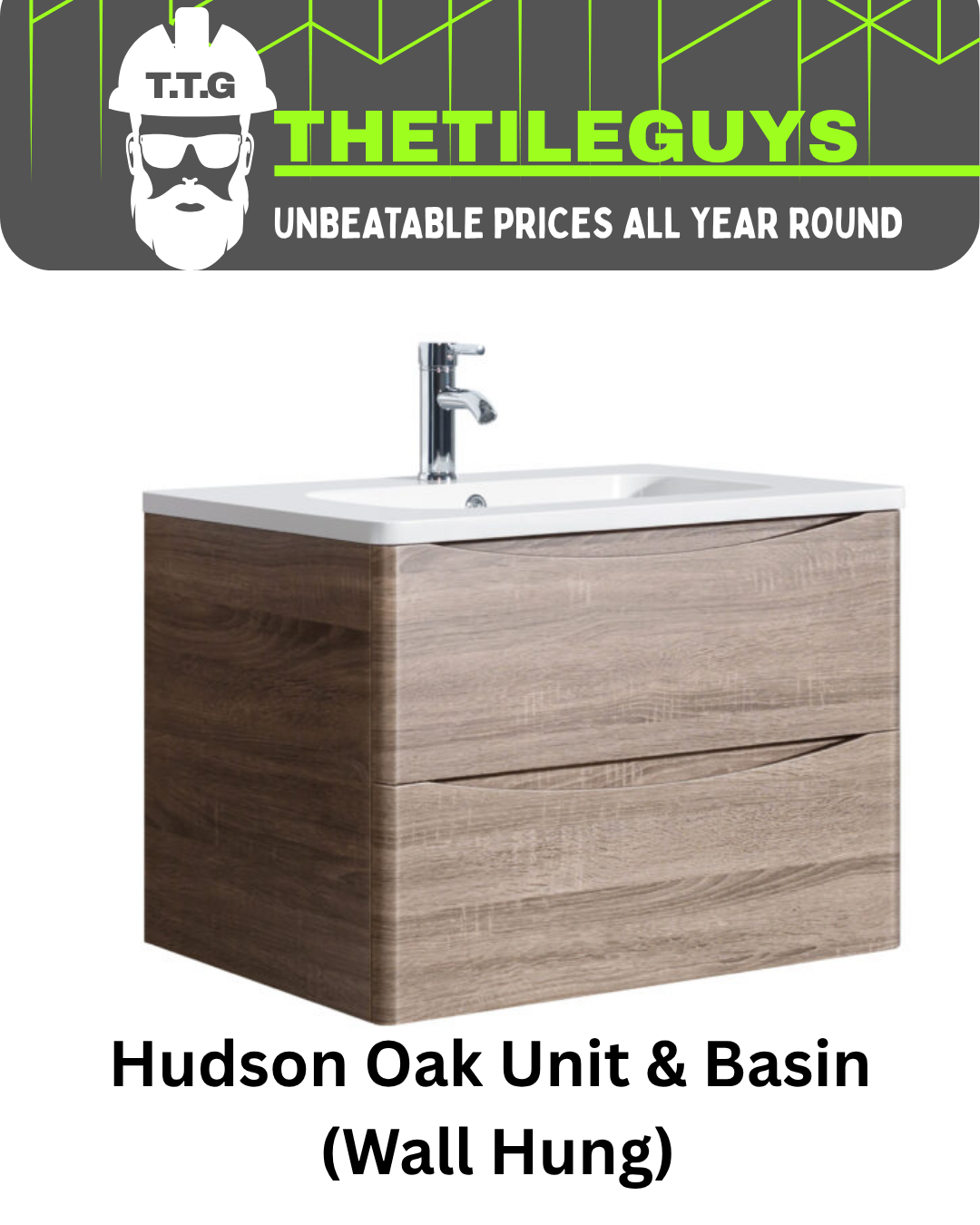 Hudson 600 Oak Unit & Basin (Wall Hung)