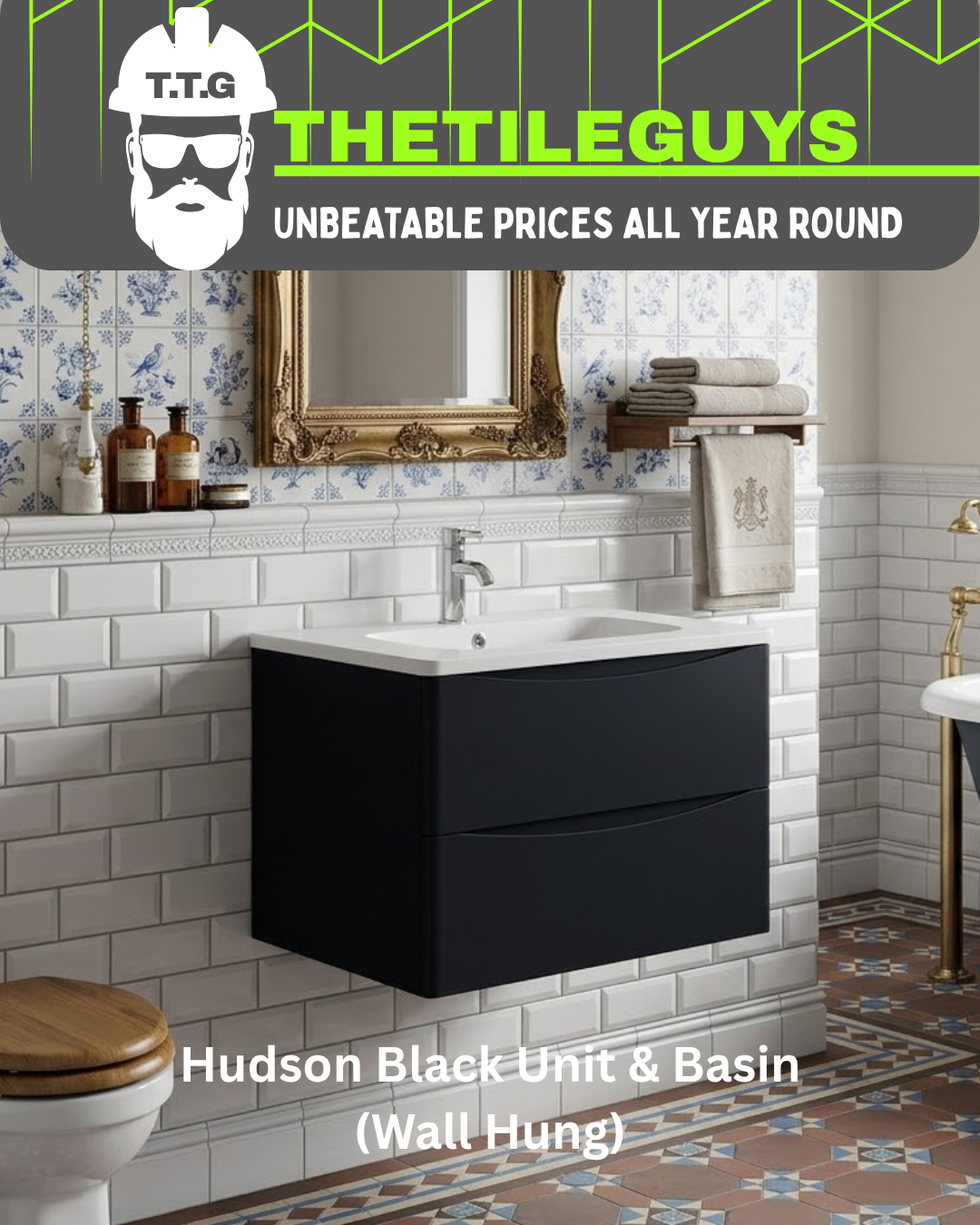 Make a bold design statement with the Hudson 600 Black Wall Hung Unit & Basin, a sleek and space-saving solution that brings modern sophistication to any bathroom setting.