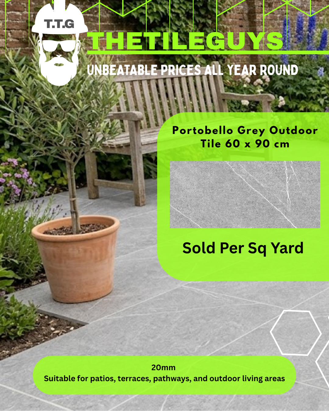 Suitable for patios, terraces, pathways, and outdoor living areas