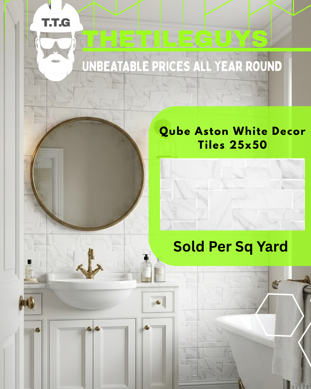 Add a stylish decorative finish to your walls with Qube Aston White Decor Tiles 25x50 Red Body Ceramic. Featuring a subtle geometric-inspired design in a crisp white finish, this elegant wall tile is perfect for creating modern feature areas in bathrooms, en-suites, kitchens, and utility spaces. Its decorative detail adds texture and interest while keeping the overall look clean, bright, and contemporary.