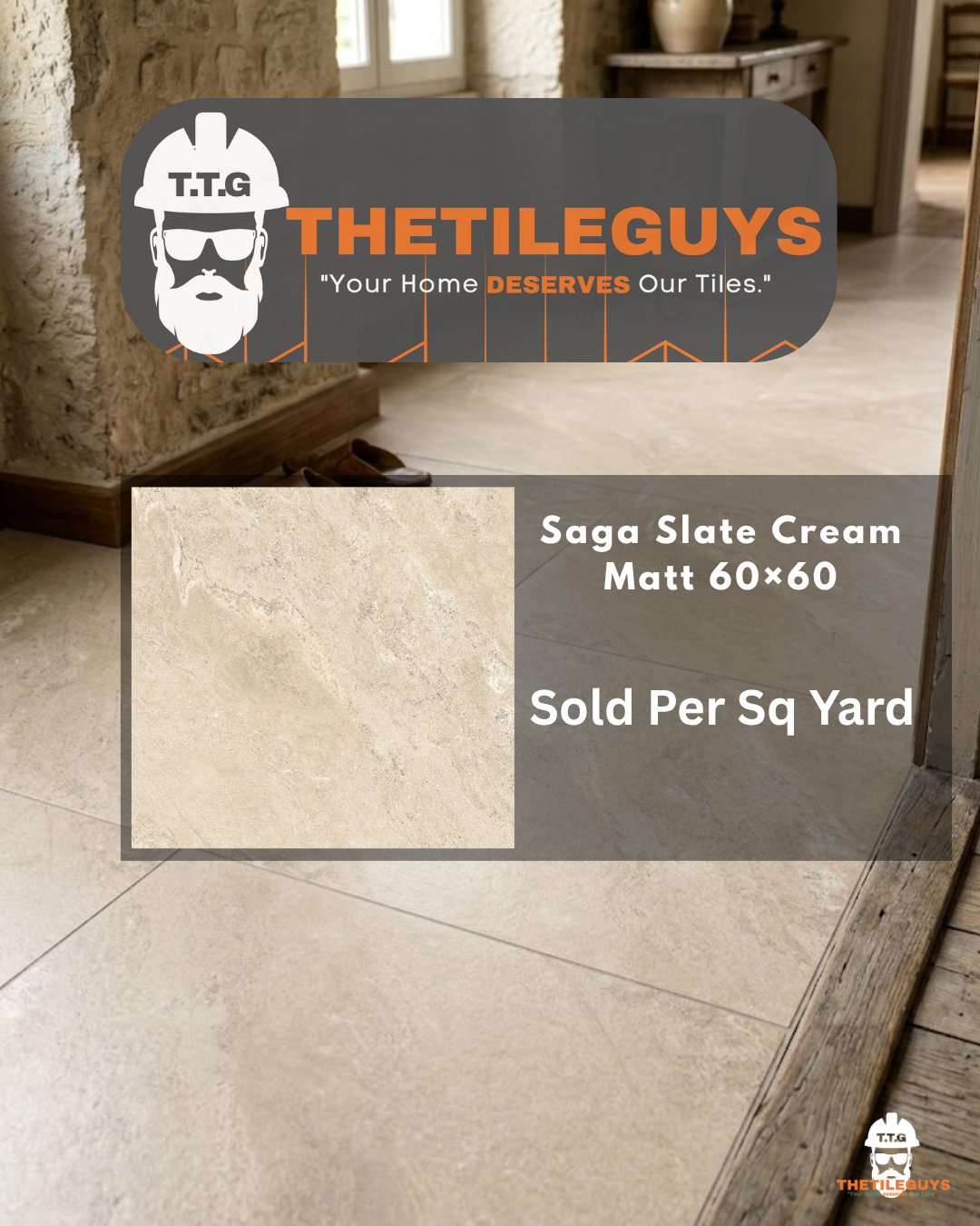 Enhance your home with Saga Slate Cream Matt 60x60 – a stylish porcelain tile that combines natural stone-inspired character with modern practicality and timeless appeal