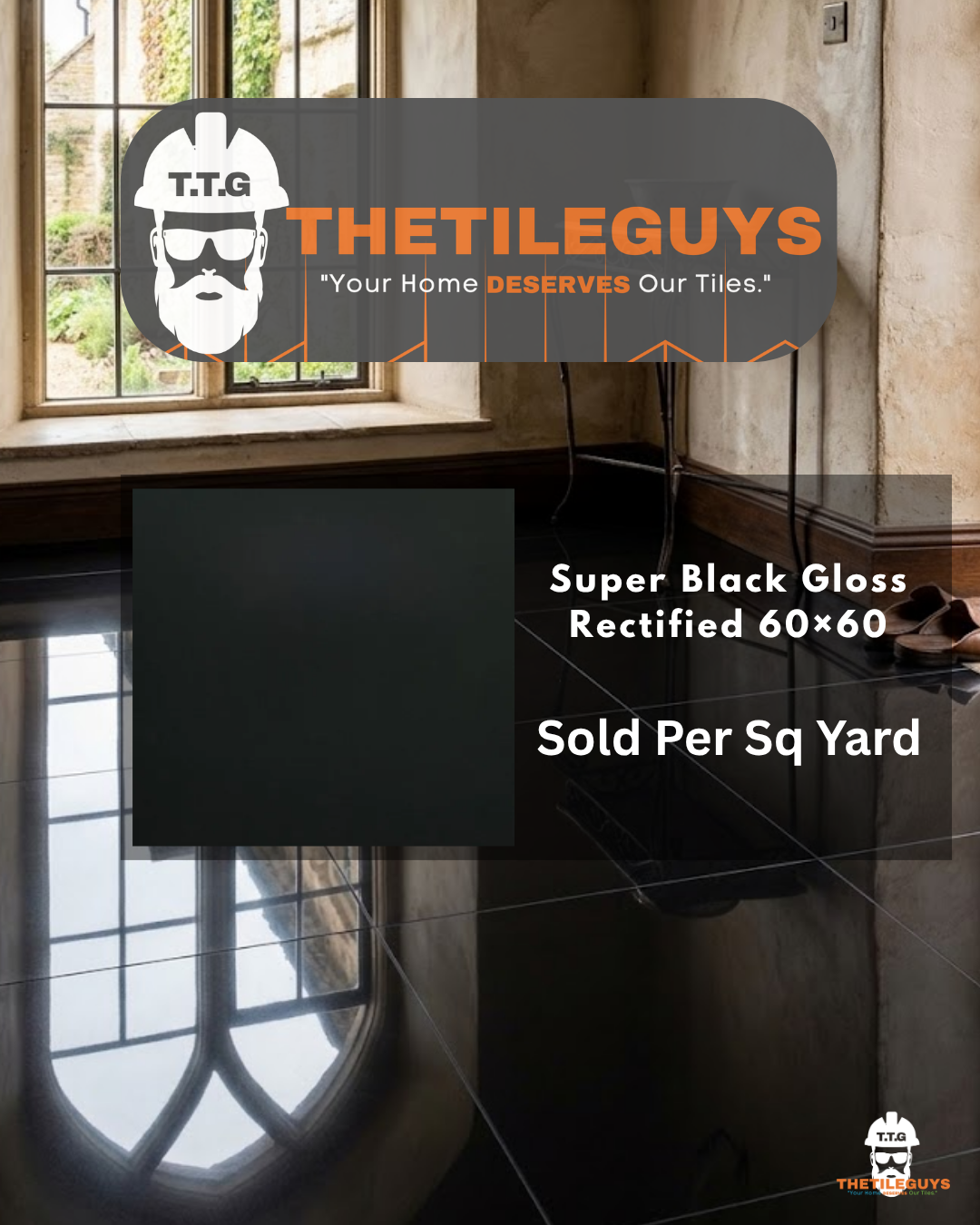 Elevate your interiors with Super Black Gloss Rectified 60x60 – a premium porcelain tile that combines dramatic style, modern elegance, and lasting durability