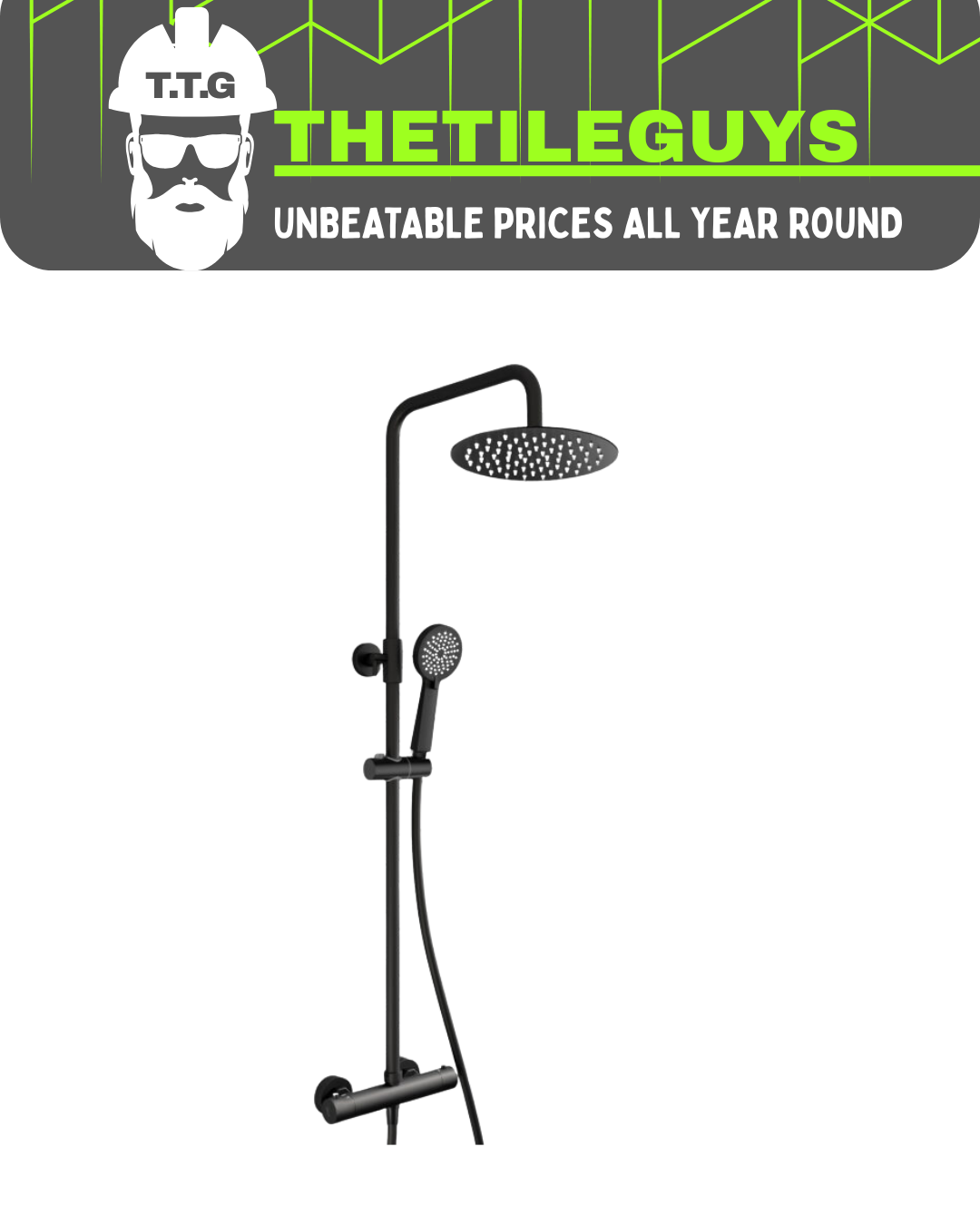 At the centre of the system is a large round rainfall shower head, designed to provide wide, even water coverage for a soothing, spa-like experience. The matt black finish not only adds a premium designer feel but also helps resist fingerprints and water marks, keeping the shower looking clean and refined with minimal maintenance.