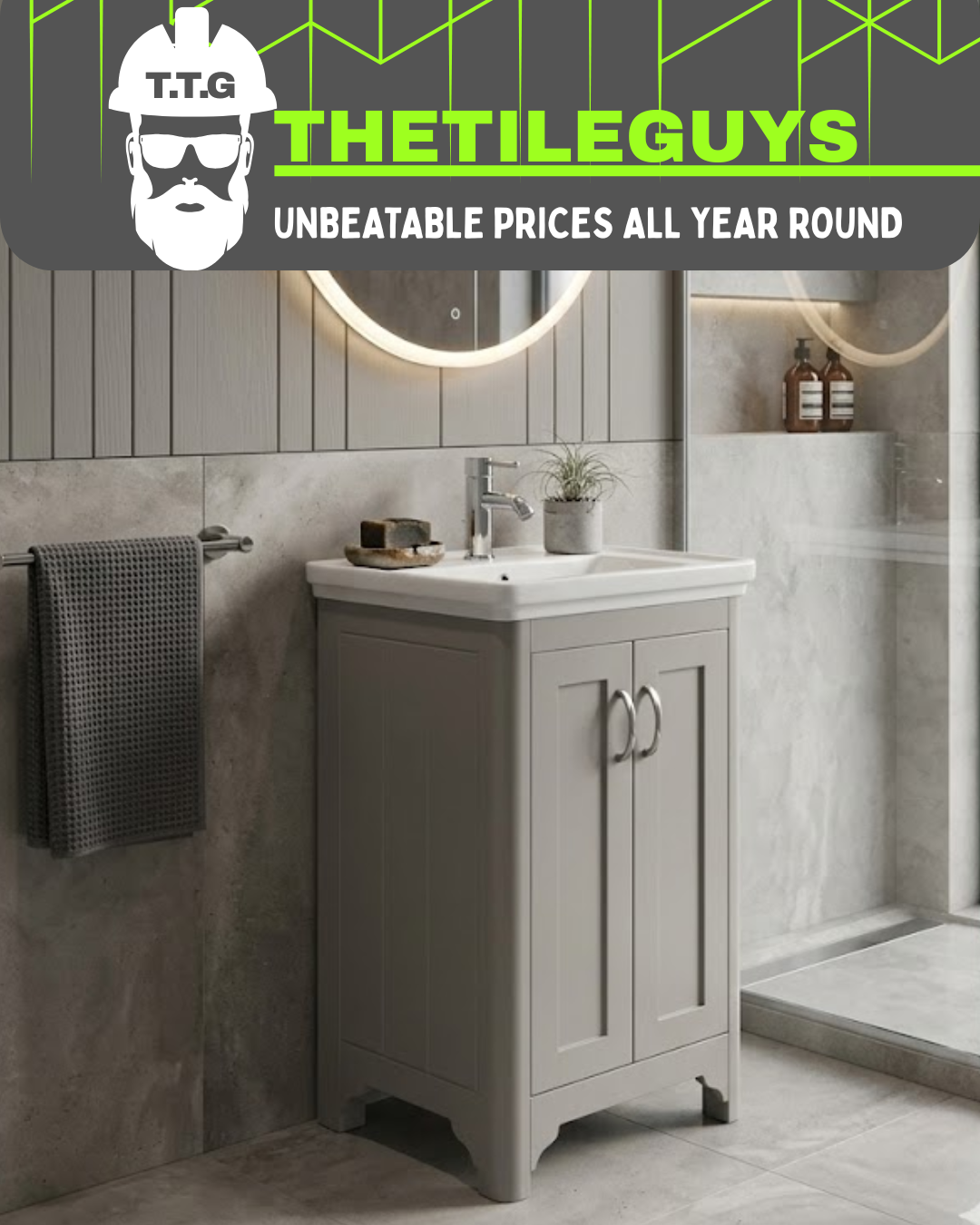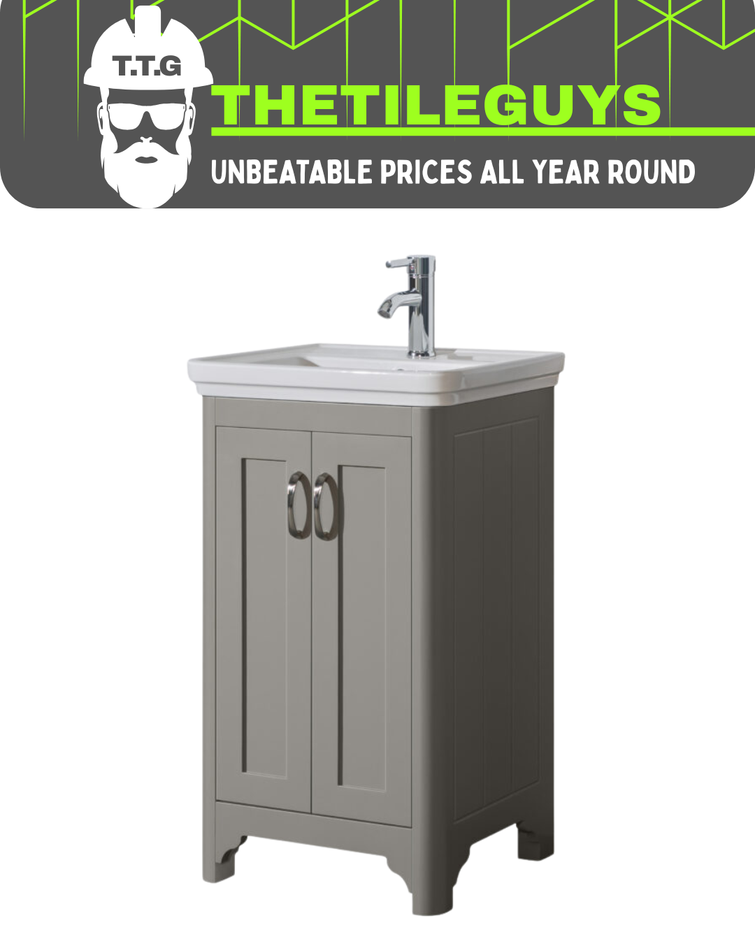The Oxford 500 Light Grey Floor-Standing Unit & Basin brings a soft, elegant feel to any bathroom space. Its light grey finish creates a calm, contemporary look, while the traditional panelled detailing adds a timeless touch that works beautifully in both modern and classic interiors.