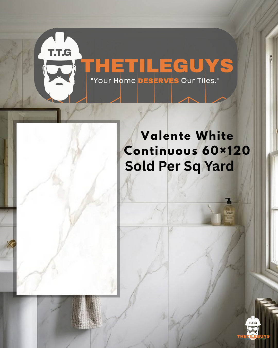 Elevate your interiors with Valente White Continuous 60x120, a premium porcelain tile that combines contemporary style, practicality, and a flawless, uninterrupted finish